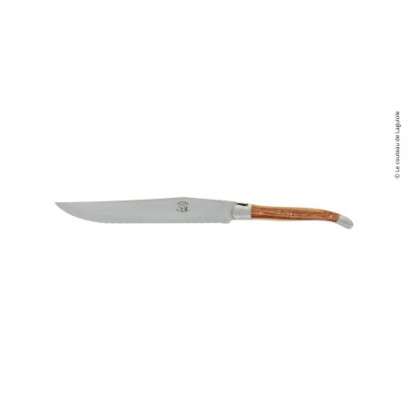 Le Couteau de Laguiole vous propose un couteau à pain avec un manche en bois de rose, et ses mitres inox. Cet accessoire d'art de la table vous accompongera à tous vos repas, pour trancher votre pain avec facilité.