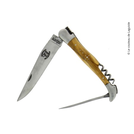 Le couteau de Laguiole vous propose ce Laguiole pliant 3 pièces, avec un manche en olivier. Le couteau pliant 3 pièces avec un tire-bouchon et un poinçon est le couteau de Laguiole ancestral.