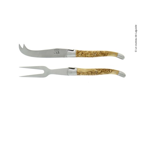 Le Couteau de Laguiole vous propose un coffret de couverts de service à fromage de Laguiole qui se compose de son couteau et sa fourchette à fromage avec un manche en bouleau, et ses mitres inox.