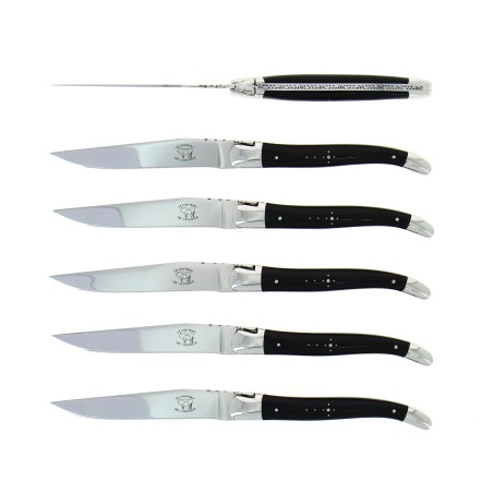 L'élégance de la forme du couteau Laguiole, le savoir-faire traditionnel et ces manches noirs donneront à votre table un style unique.